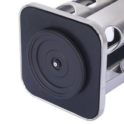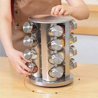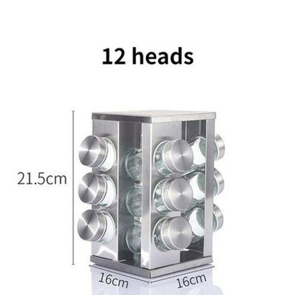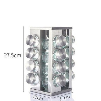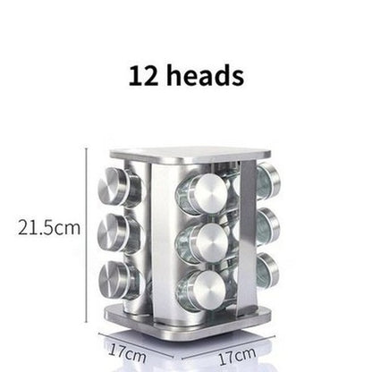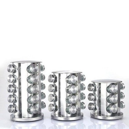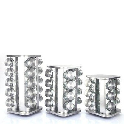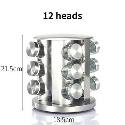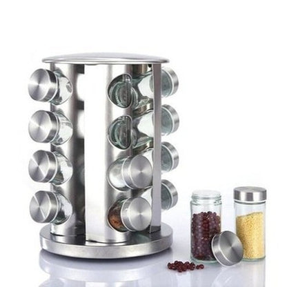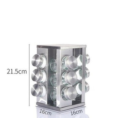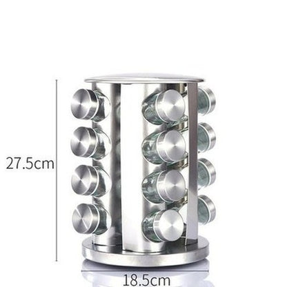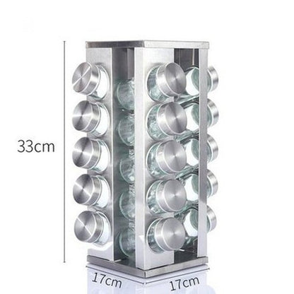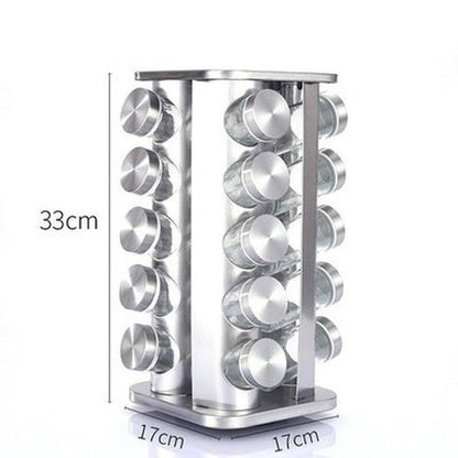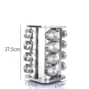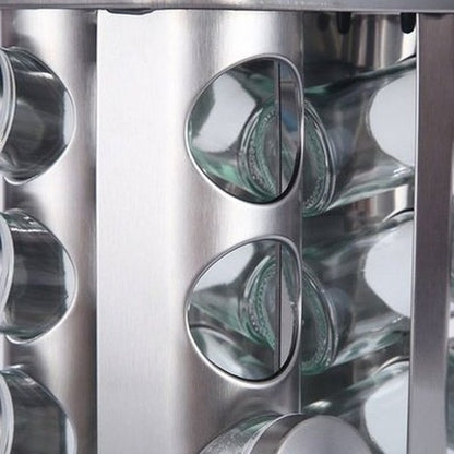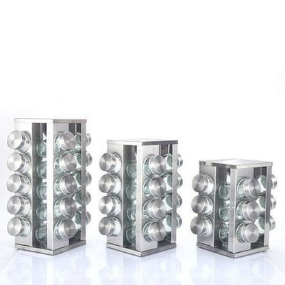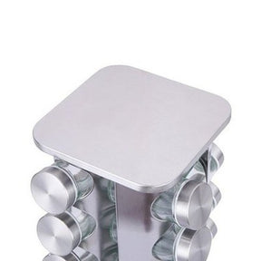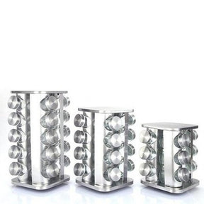 Stay organized in the kitchen with this luxurious steel Spice Jar Organizer. This elegantly designed piece features a durable steel frame with multiple slots and jars, creating the perfect space for storing, organizing, and displaying all of your spices. With its exclusive aesthetic, it adds a stylish, sophisticated touch to any kitchen.