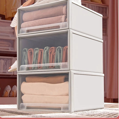 Stackable Clothes Storage Box, Modern Drawer Type Plastic Container with Lid