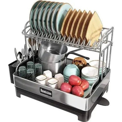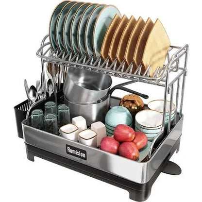 This Stainless Steel 2-Tier Dish Drying Rack is the perfect solution for efficiently drying dishes and utensils. With its sturdy construction and sleek design, it provides ample space for air-drying your kitchenware while maximizing counter space.
