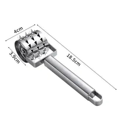 This Stainless Steel Meat Tenderizer Roller is a must-have kitchen tool for effortlessly tenderizing steak, beef, and pork. Made of durable stainless steel, this tenderizer features a full surface of sharp nails that effectively tenderize meat, allowing for more flavorful and delicious results.