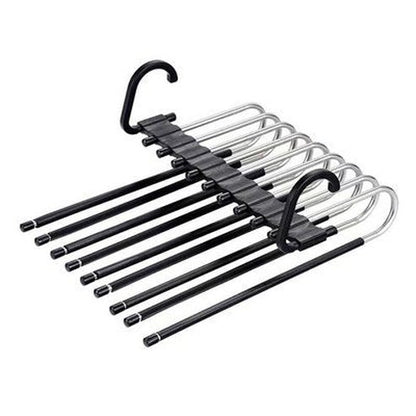 Introducing our Stainless Steel Trouser Hangers, the ultimate wardrobe addition for the fashion-savvy. These sleek and multifunctional stainless steel pant hangers are designed to provide a non-slip storage shelf within your closet, offering a practical and stylish solution to maximize available space. With their sophisticated design and touch of luxury, these superiorly durable hangers guarantee lasting use thanks to their sturdy construction. The Folding Pants Rack features plastic or stainless hooks with 9 or 5 tubes in an elegant black finish, allowing you to effortlessly organize your wardrobe at home or even on your balcony. Each hanger is meticulously crafted with a single side opening design and a retractable hanging rod, ensuring easy access to your clothes while adding an extra level of convenience. Manufactured in Mainland China from high-quality stainless steel materials, these trouser hangers also feature tail anti-slip caps for added stability and protection against slippage. Enhance the organization of your closet today with our C037MYOBO Stainless Steel Trouser Hangers; elegance meets functionality in one impeccable package!