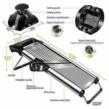 Upgrade your kitchen with our Stainless Steel Vegetable Slicer Adjustable Mandoline Slicer and experience the convenience and precision of effortless slicing and shredding. Whether you're a professional chef or a cooking enthusiast, this versatile tool will revolutionize your culinary creations.
