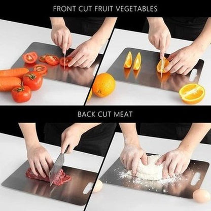 Cut like a pro with our 304 Stainless Steel Cutting Board, the ultimate antimicrobial solution for all your meat, cheese, and vegetable chopping needs.