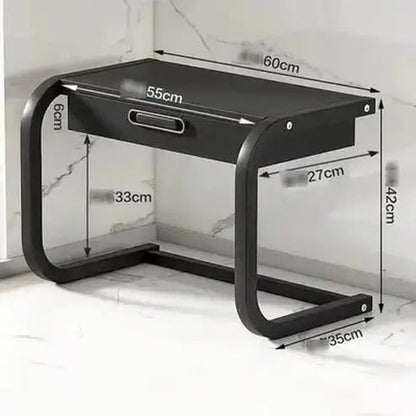 Crafted from resilient carbon steel, this two-tier home storage rack offers an ideal solution for efficient kitchen organization. Specifically engineered to accommodate kitchen essentials like tableware and a microwave oven, this shelf goes the extra mile with a built-in practical storage drawer, significantly enhancing its organizational capabilities.