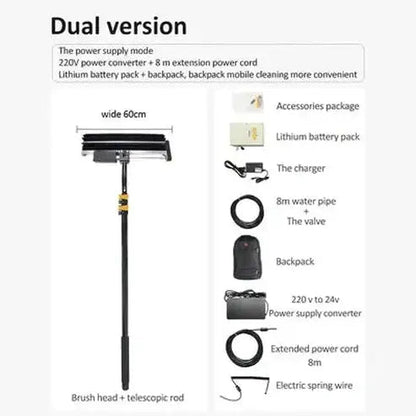 Water-Fed Telescopic Pole: The included telescopic pole with a water-fed system allows you to reach and clean even the most challenging areas of your solar panels without the need for manual intervention. Keep your solar panels sparkling clean from the ground.