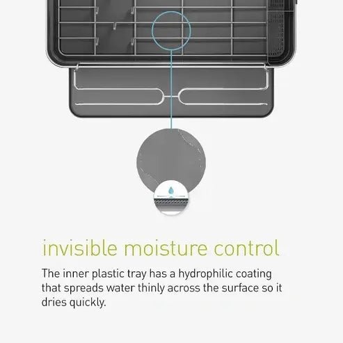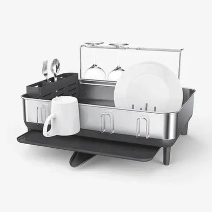 Efficiently dry your dishes with the OEING Kitchen Dish Drying Rack. This innovative dishrack features a stainless steel frame and a gray plastic tray with advanced drainage capabilities.