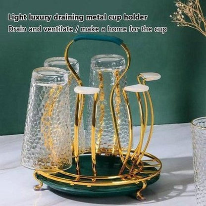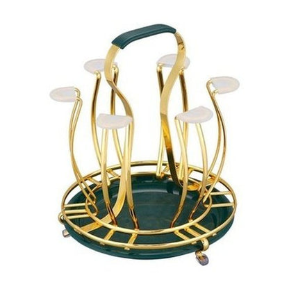 Golden Wrought Iron Drying Rack Organizer Holder for Glass Ceramic Coffee Mugs Water Bottle.