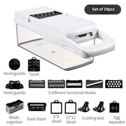 - 7 Interchangeable Blades for Dicing, Slicing, Shredding & Grating