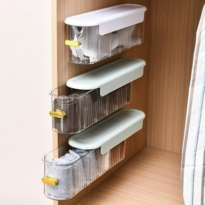 The Underwear Storage Box Case Organizer is designed to be wall-mounted, making it easy to hang inside your wardrobe or on a wardrobe shelf. The smooth pulling drawers allow for easy access to your items, while the large capacity of the storage box can accommodate numerous small items.