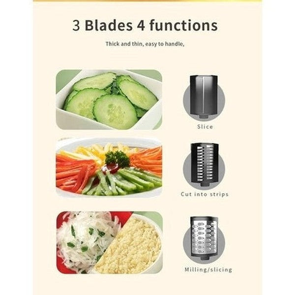 Tired of tedious chopping and hand cramps? Upgrade your kitchen with our USB Roller Vegetable Cutter! This innovative 3-in-1 tool makes short work of slicing, shredding, and dicing vegetables, saving you time and effort in the kitchen.