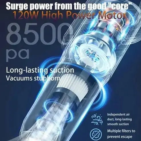 - 8500pa Powerful Suction: Capable of picking up even the smallest particles of dust and dirt, this handheld vacuum cleaner ensures efficient cleaning on both carpets and hard floors.